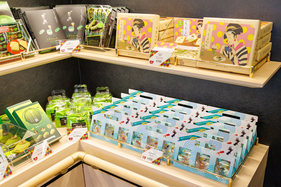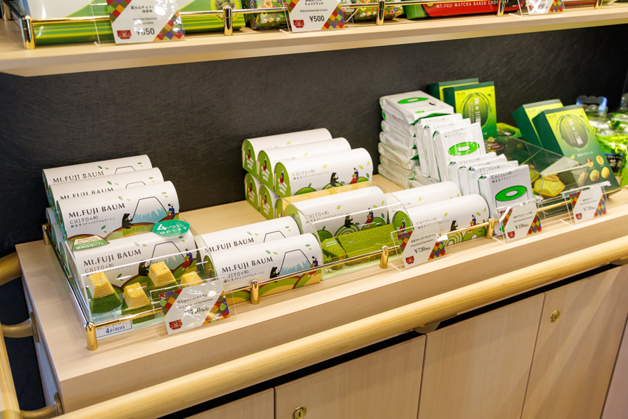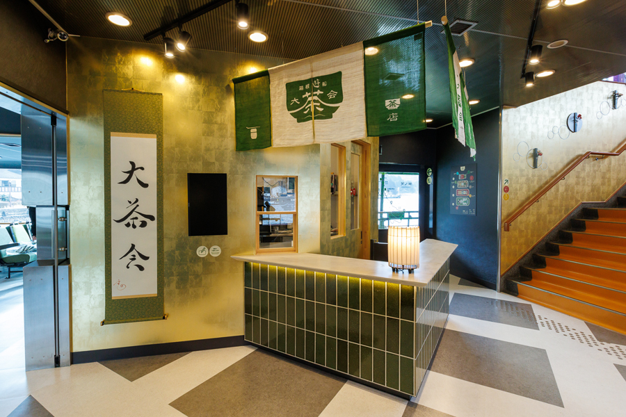 船内1階の「茶店」では、抹茶を使った、多数のドリンクやスイーツを取り揃えます。